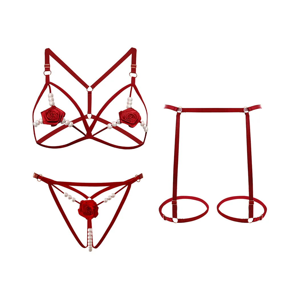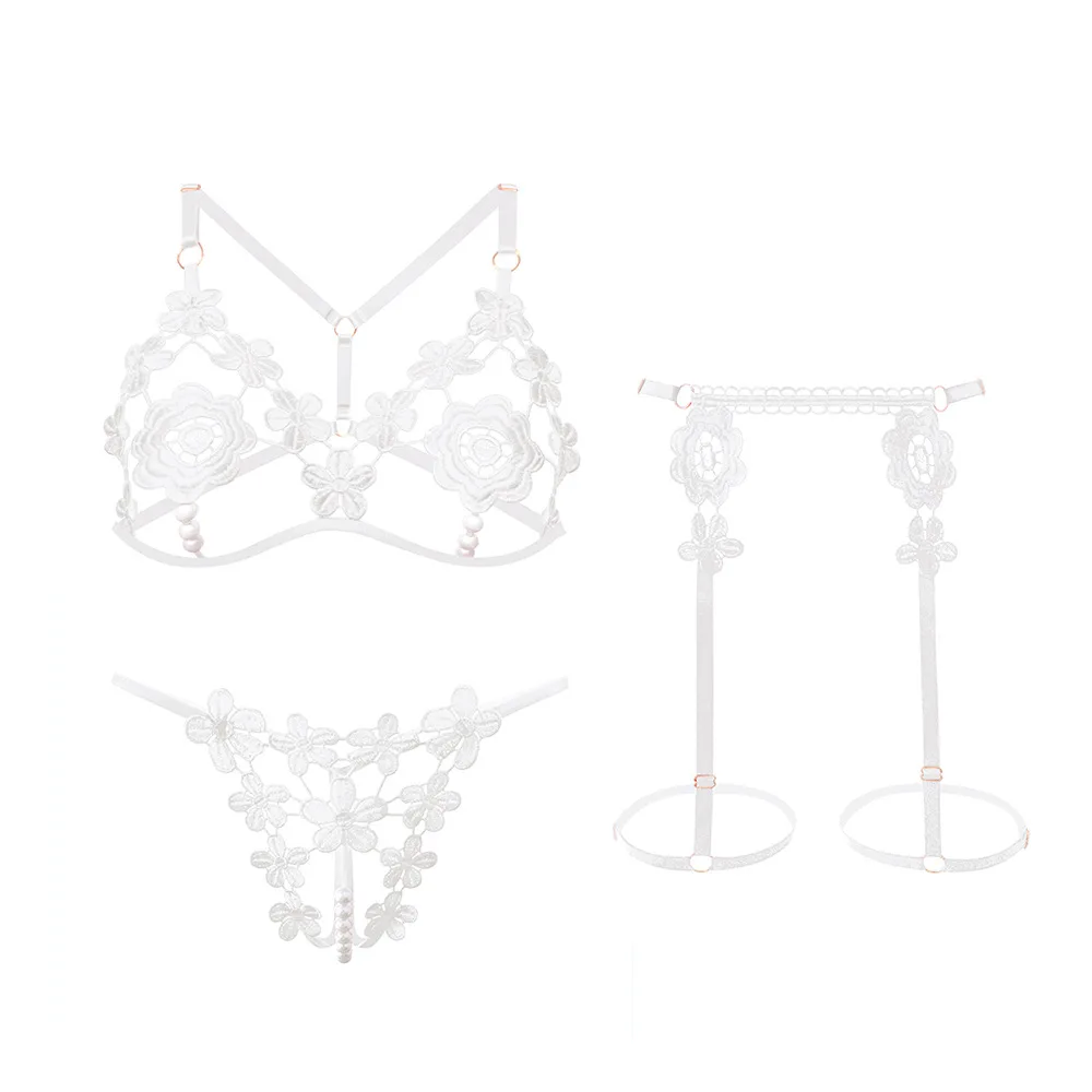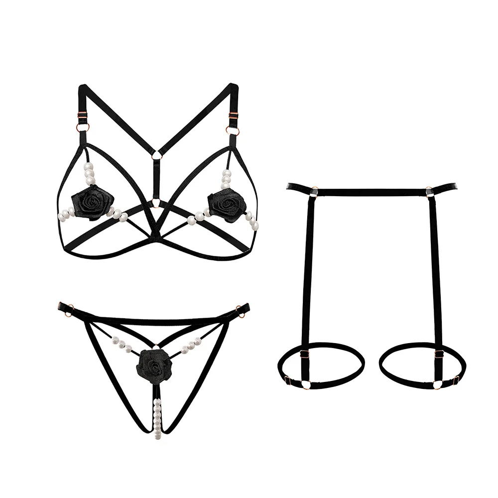 Complete 3-Piece Set – Includes bra, panties with massage beads, and garter belt.