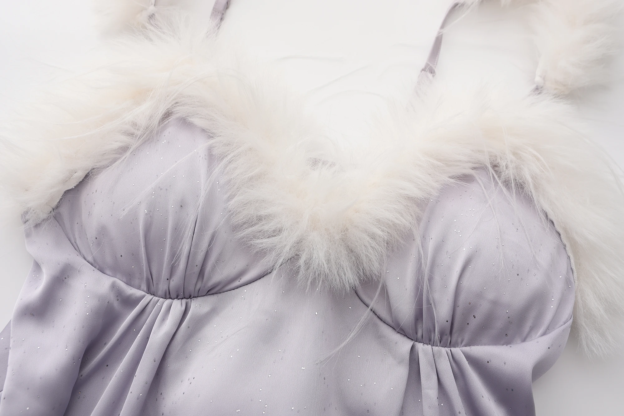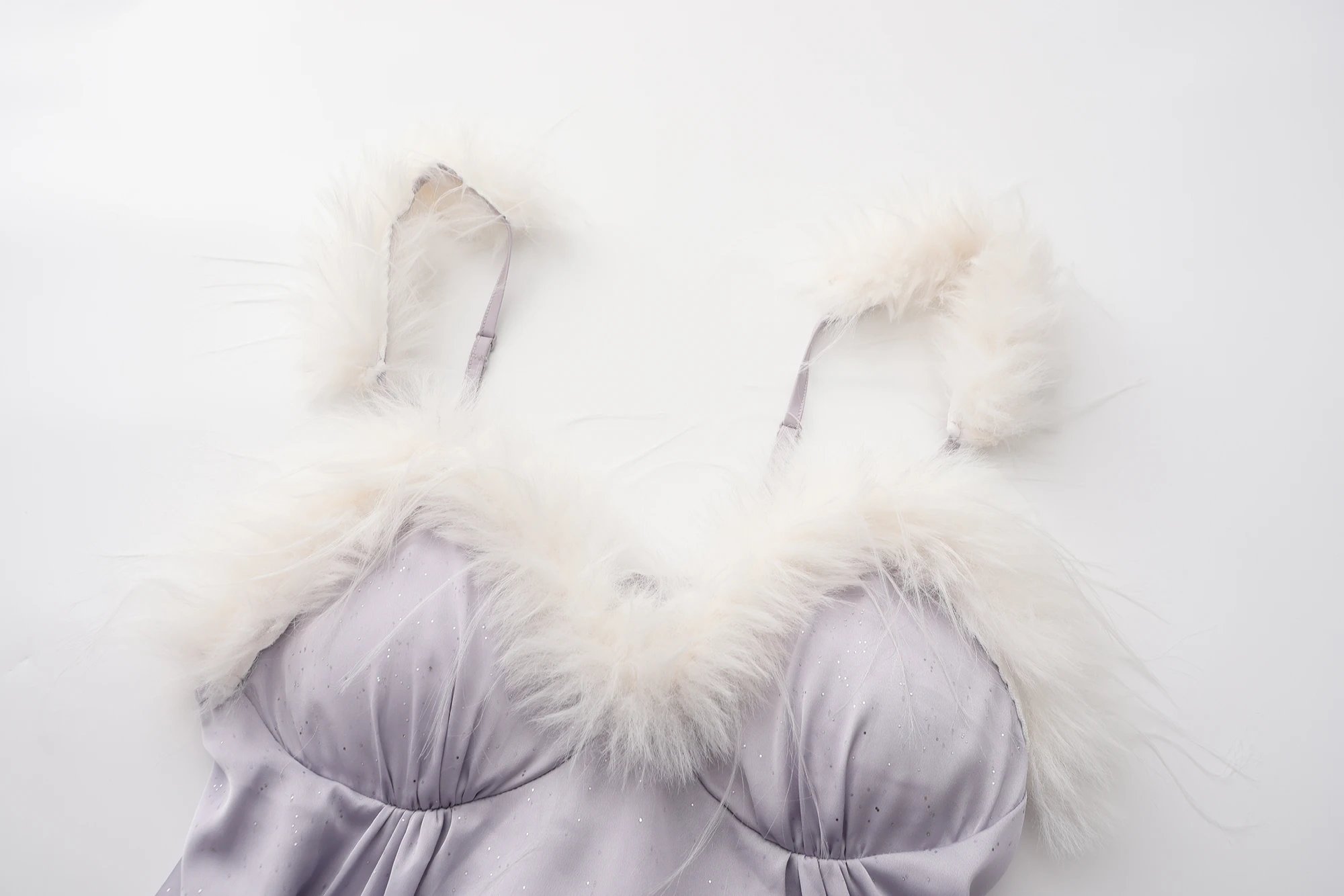 Feather Trim Details – Luxurious and eye-catching for an elegant look.